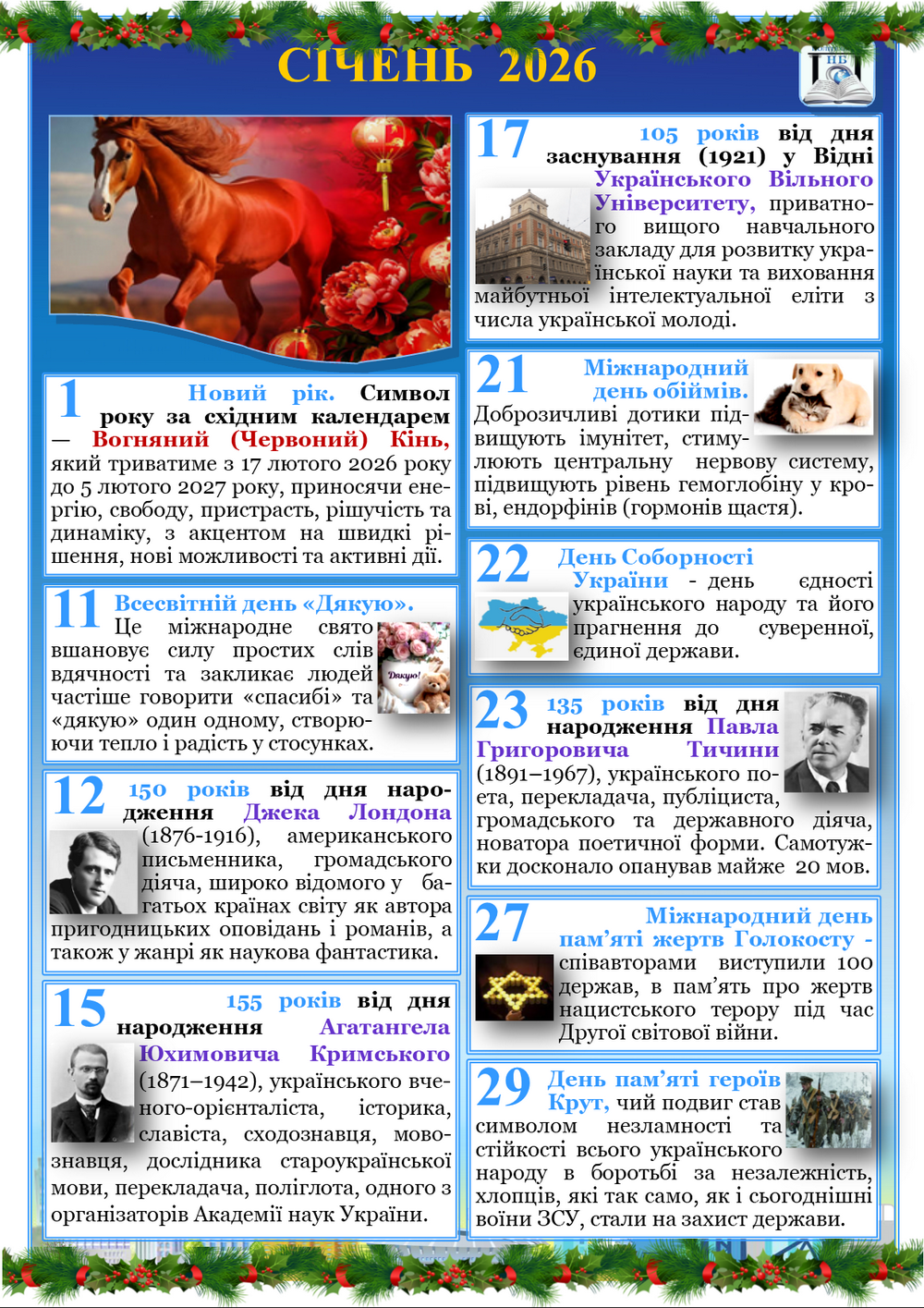 Календар знаменних дат і подій на січень 2026 року