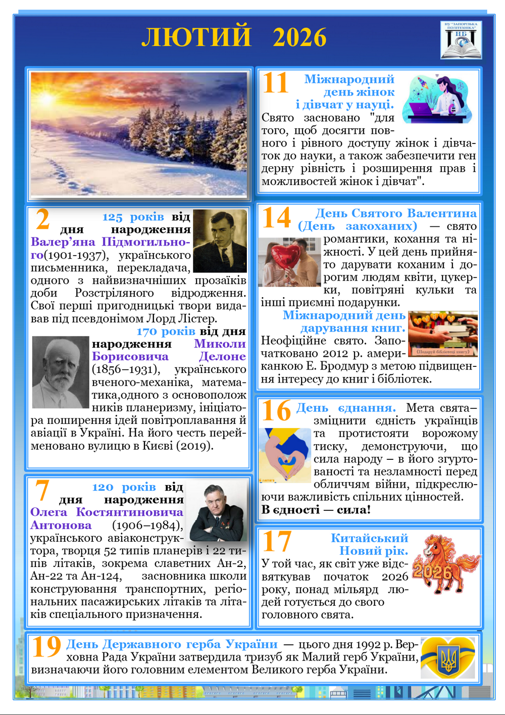 Календар знаменних дат і подій на лютий 2026 року